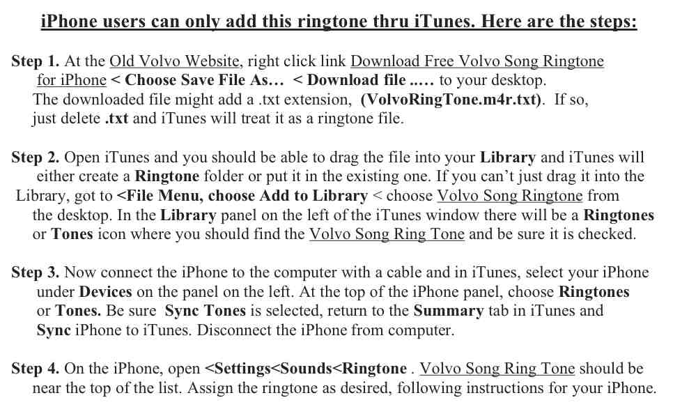 ringtone folder. Getting it there is the tricky part. When downloading directly to your phone, the file may not download directly to the ringtone folder. If you can't move the file using just your phone, you'll have to connect your phone to a computer and drag the ringtone out of the phone's download folder or music library folder, and into the phone's ringtone folder. This will almost always be the case with iPhones which will only access the ringtones folder in iTunes. In the table below are specific dircections for getting the ringtone into iTunes and then into your phone. |