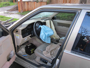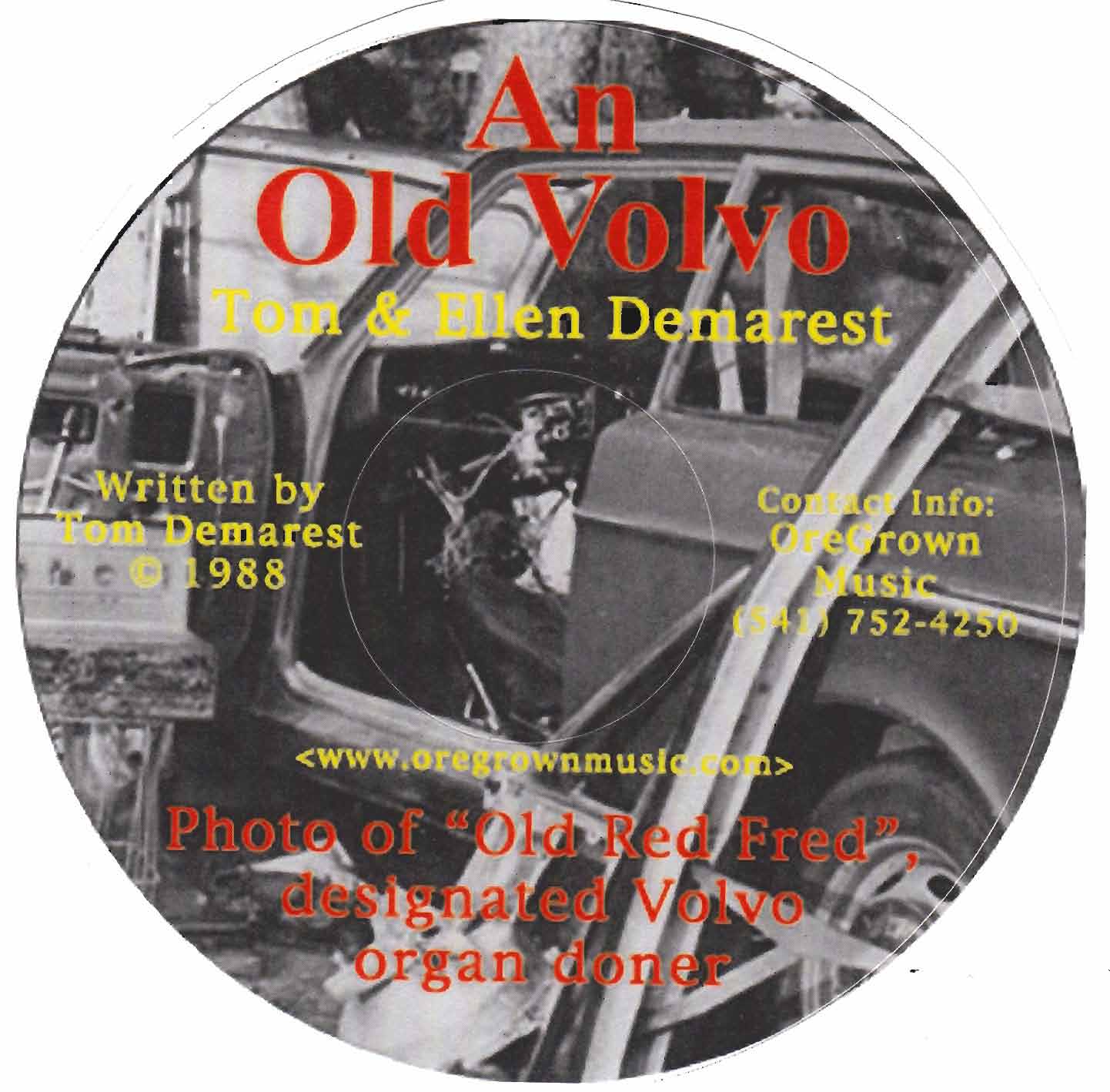 Once upon a time, (the summer of 1978) Tom met Ellen. Several days later Tom met Fred, Red Fred that is, Ellen's trusty 1968 Volvo 142, shown in his later years on the label of this CD. Previously, following Fred's second encounter with an unmatching bumper, Ellen's parents, long time Volvo owners, reached the conclusion that it would be a sounder investment to "deed ole' Fred" to their daughter rather than fund this latest restoration. Besides, "damsel in distress", you know it could be the means by which she might meet a suitable young beau off in that sleepy little college town of Corvallis, Oregon. Thus entering on the scene was not-so-young Tom, innocent of Volvos but with an interest in things mechanical (as many guitar players seem to be) and with a keen eye for a pretty damsel in distress, especially one with a beautiful voice. A year and a half later ole Red Fred became the unofficial dowry. By 1984 Tom has become so experienced in the workings of the likes of Fred, a small business called Demarest's Corner Garage appears in the neighborhood to service the numerous Old Volvos which can be found in many college towns. Out of the chaos and cacophony which is inherent to an automotive repair shop, a song arises and is soon heard at the local coffee houses. Shown as an old Volvo organ donor, Red Fred resides on our CD label. Well, the garage is now an espresso bar called Sam's Station, a wonderful improvement to our neighborhood. The only Volvos in our lives now are our own. But the song lives on and if you've ever had the pleasure an old Volvo in your life, you will relate! |